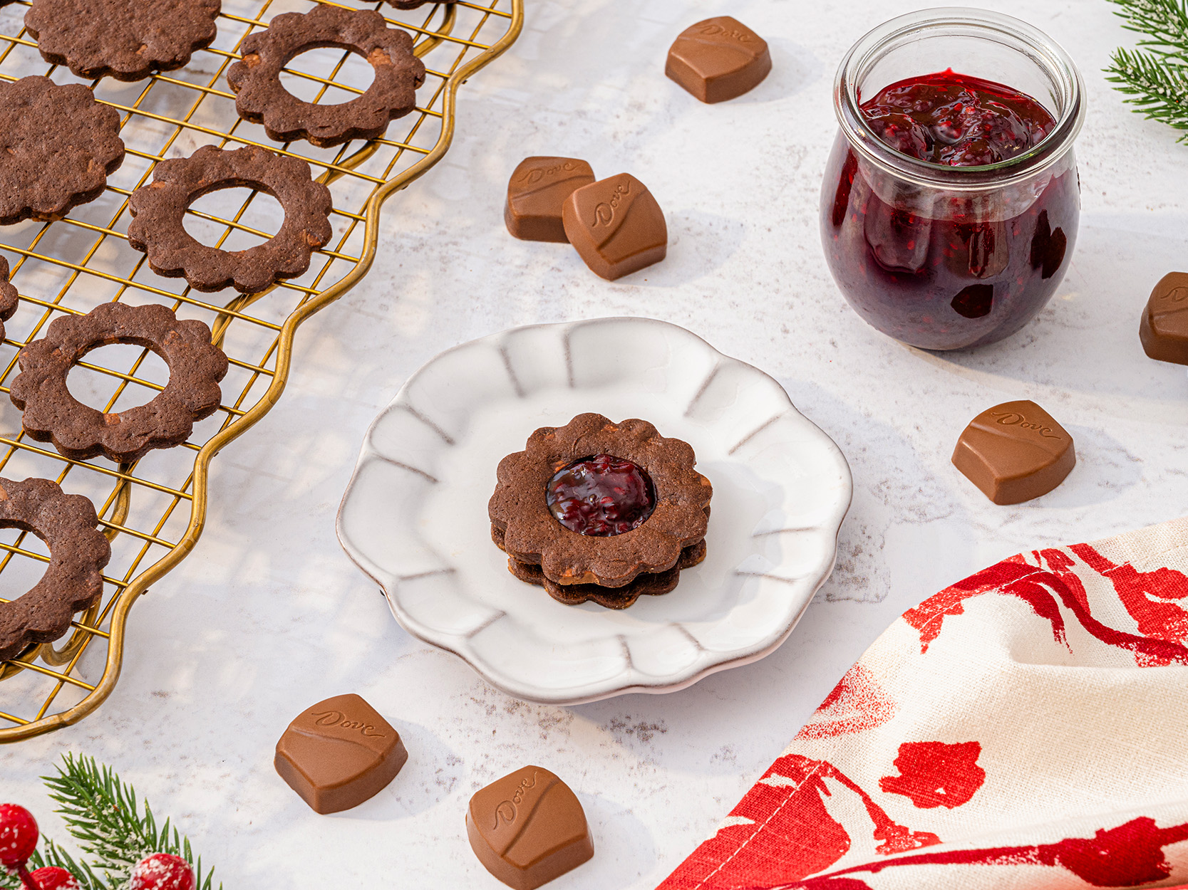 Festive DOVE Chocolate-Berry Linzer Cookies